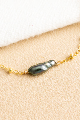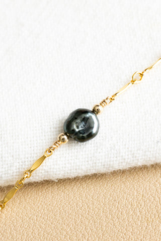 Dark Boxy/Round Keshi Tahitian Pearl & Bead Jay Bracelet