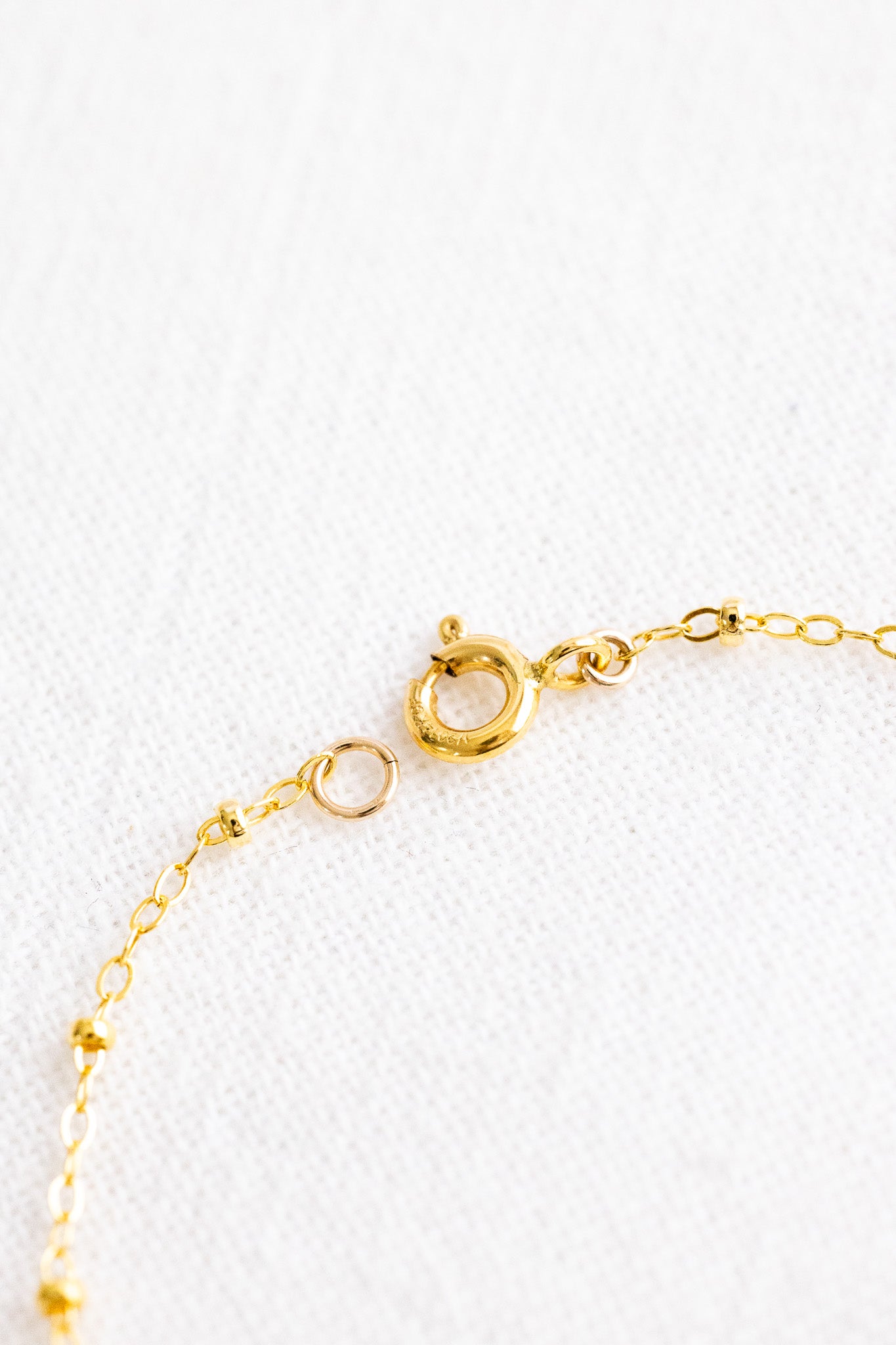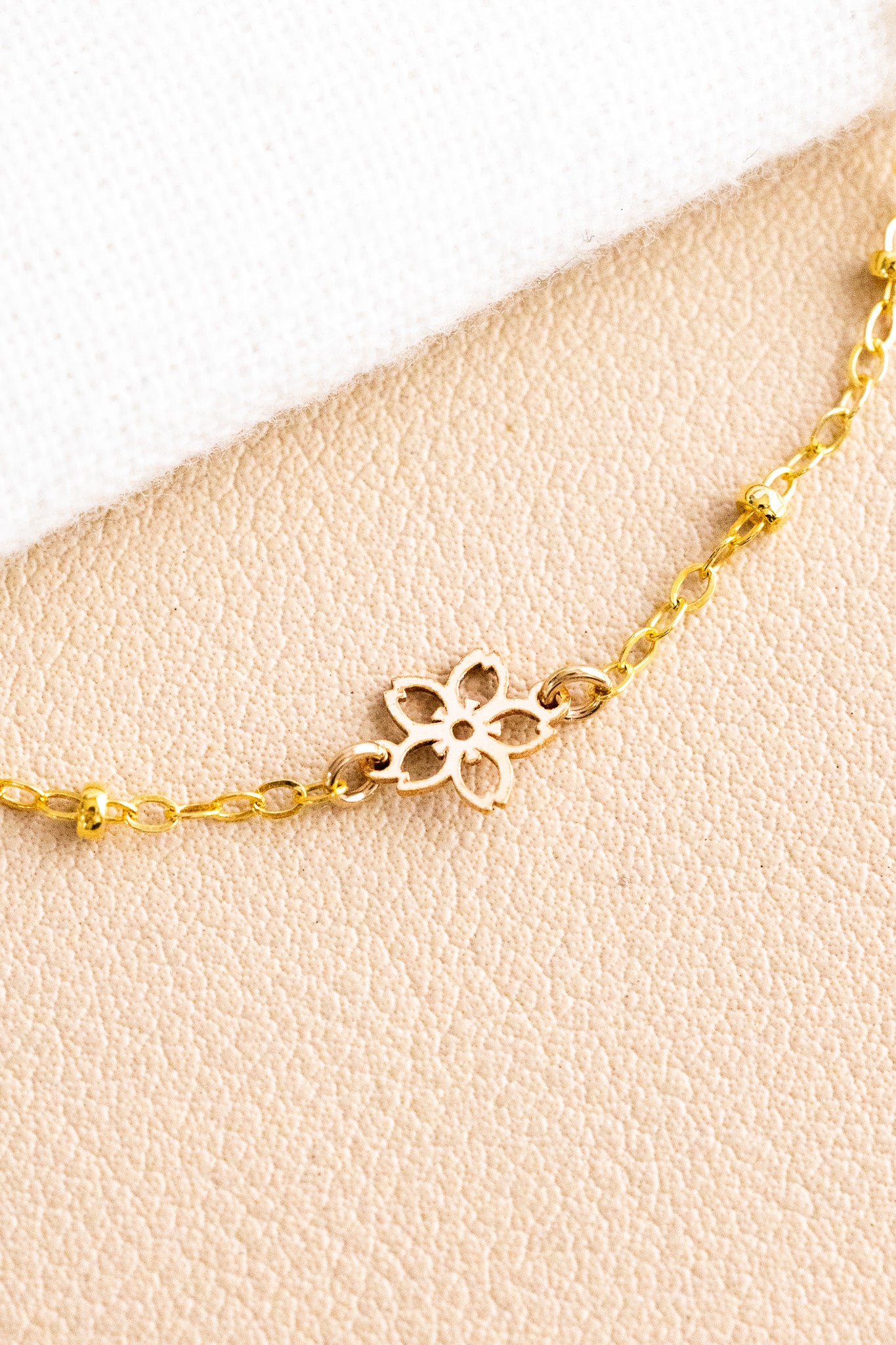 - 14k gold filled dainty satellite chain bracelet with a 8mm gold filled sakura connector