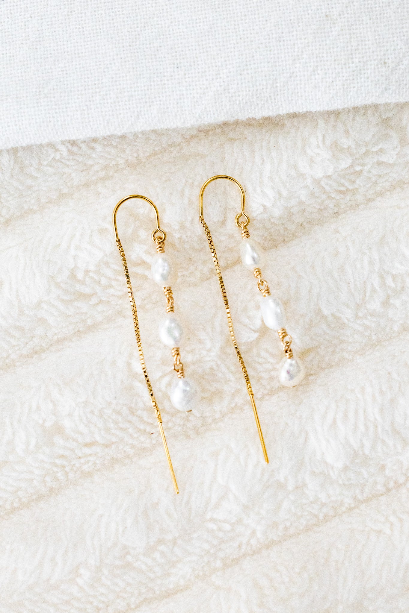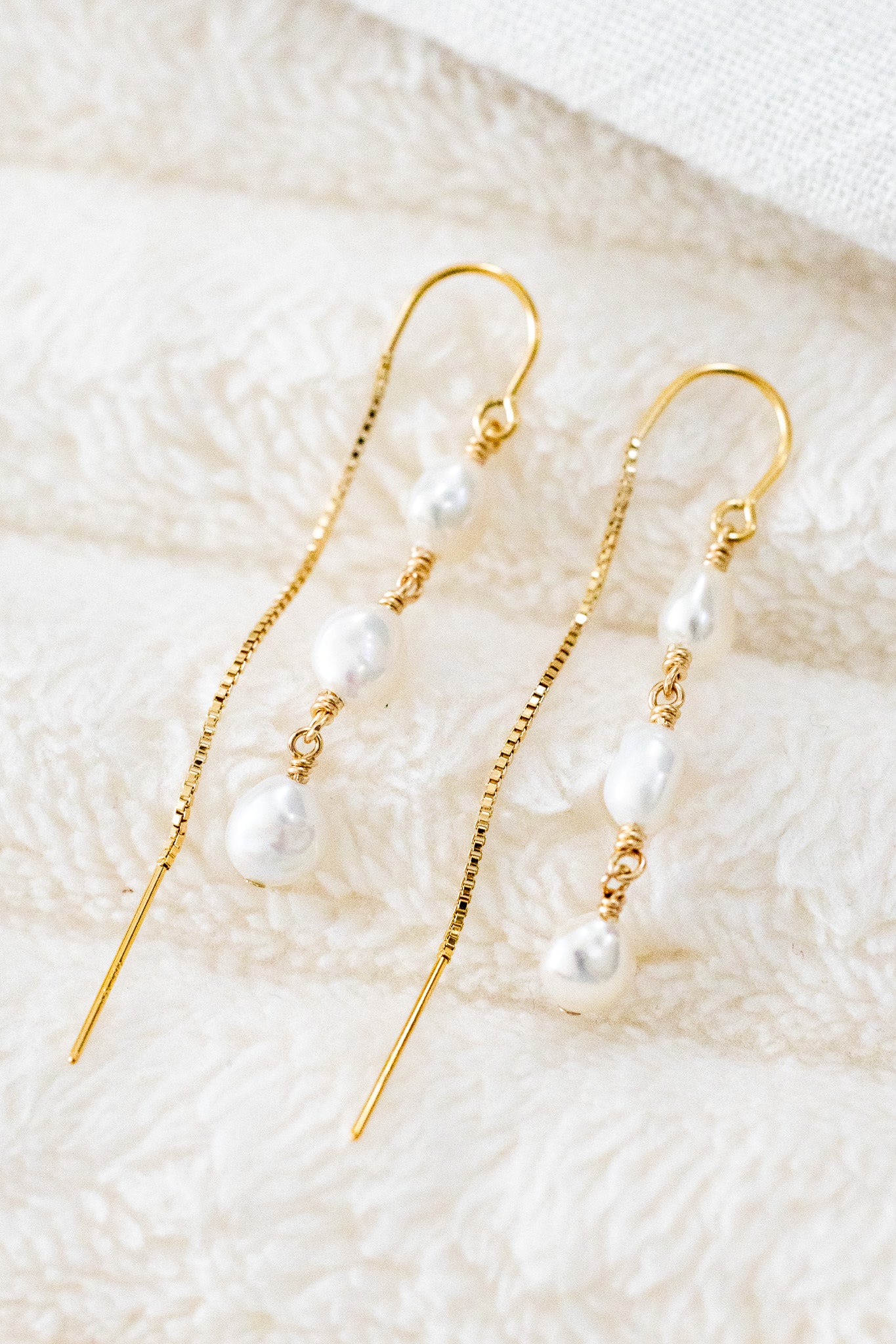 - 14k gold filled U box chain ear threaders with 5-5.5mm keshi freshwater pearls