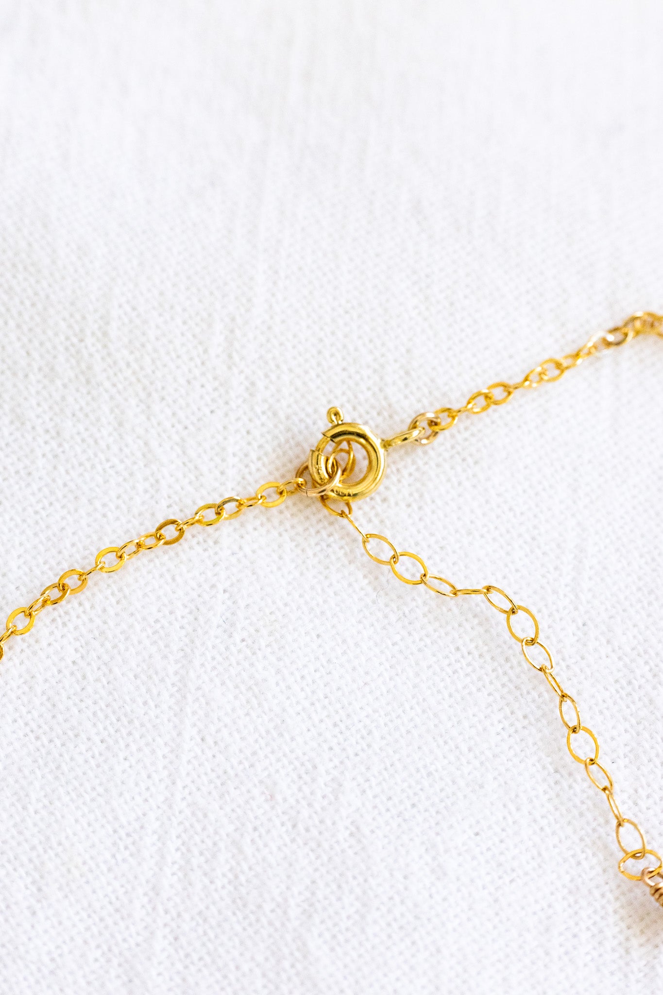 - Length: 15" + 2" extender chain with a 2.5mm gold filled bead at the end