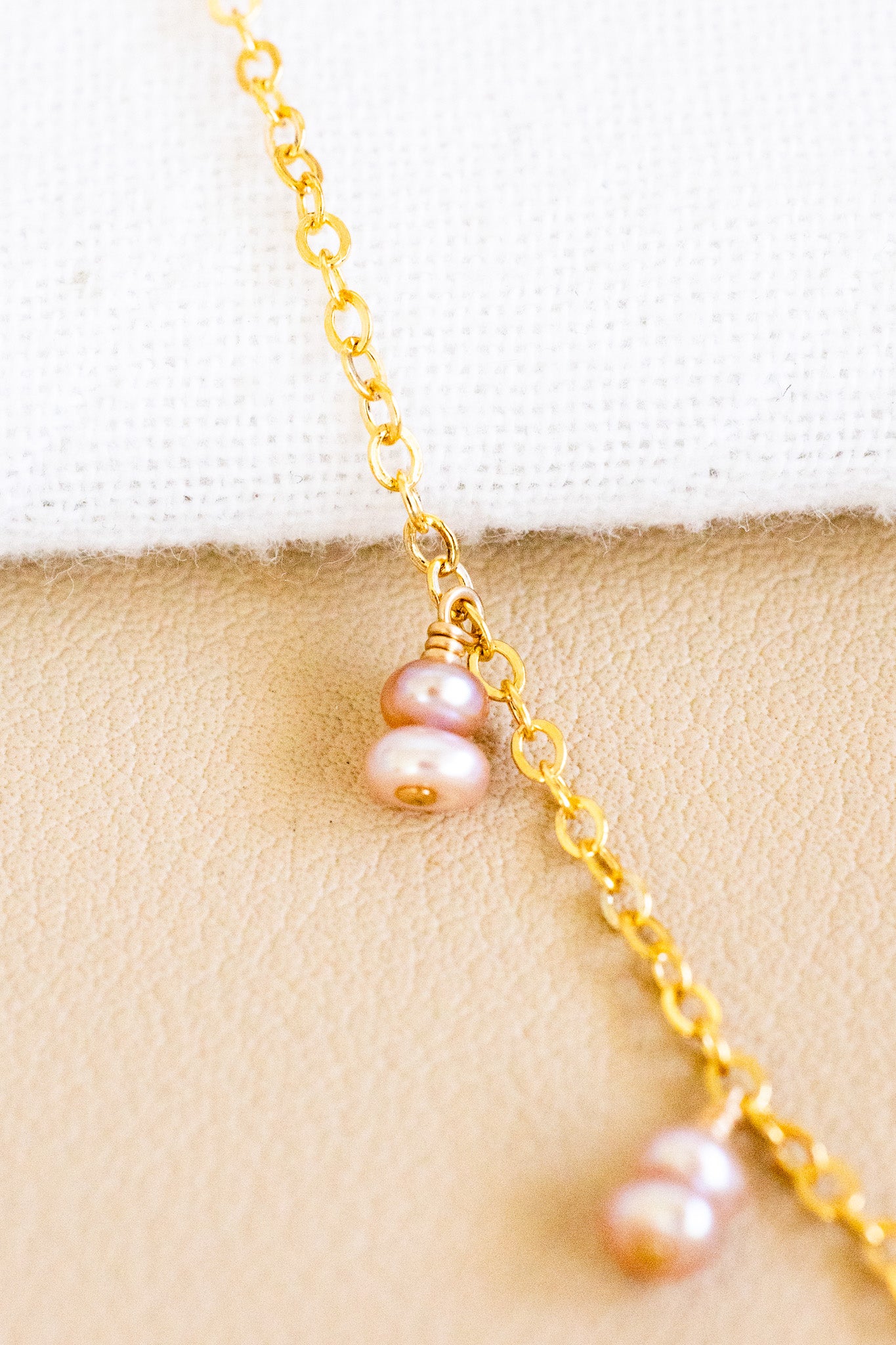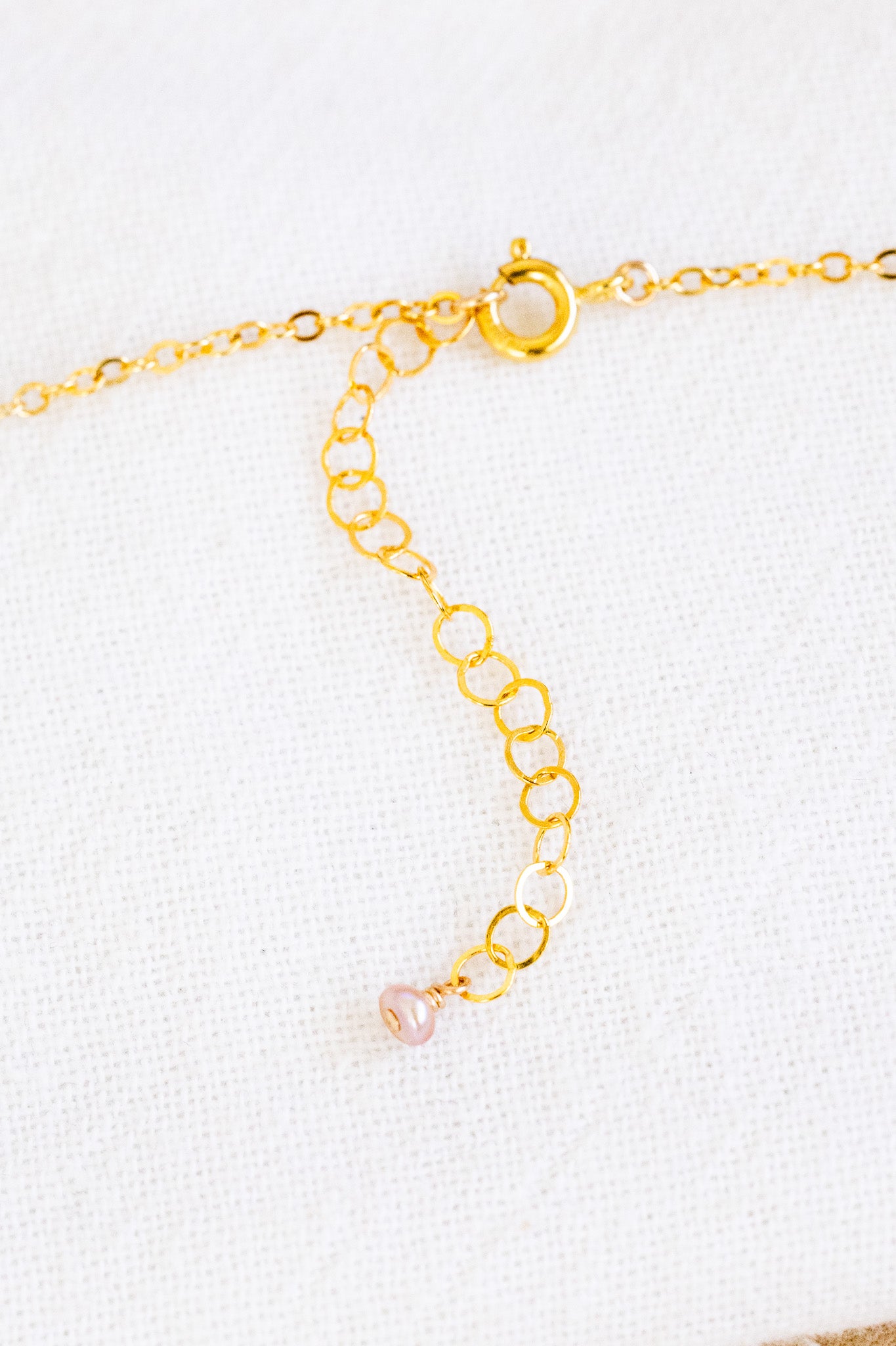 - Length: 16" + 2" extender chain with a 2mm x 3mm mini button-shaped pink freshwater pearl at the end
