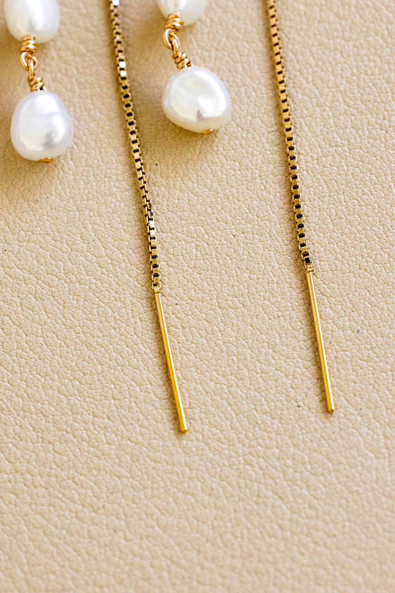 • 14k gold filled U box ear threaders with double keshi freshwater pearls on each side