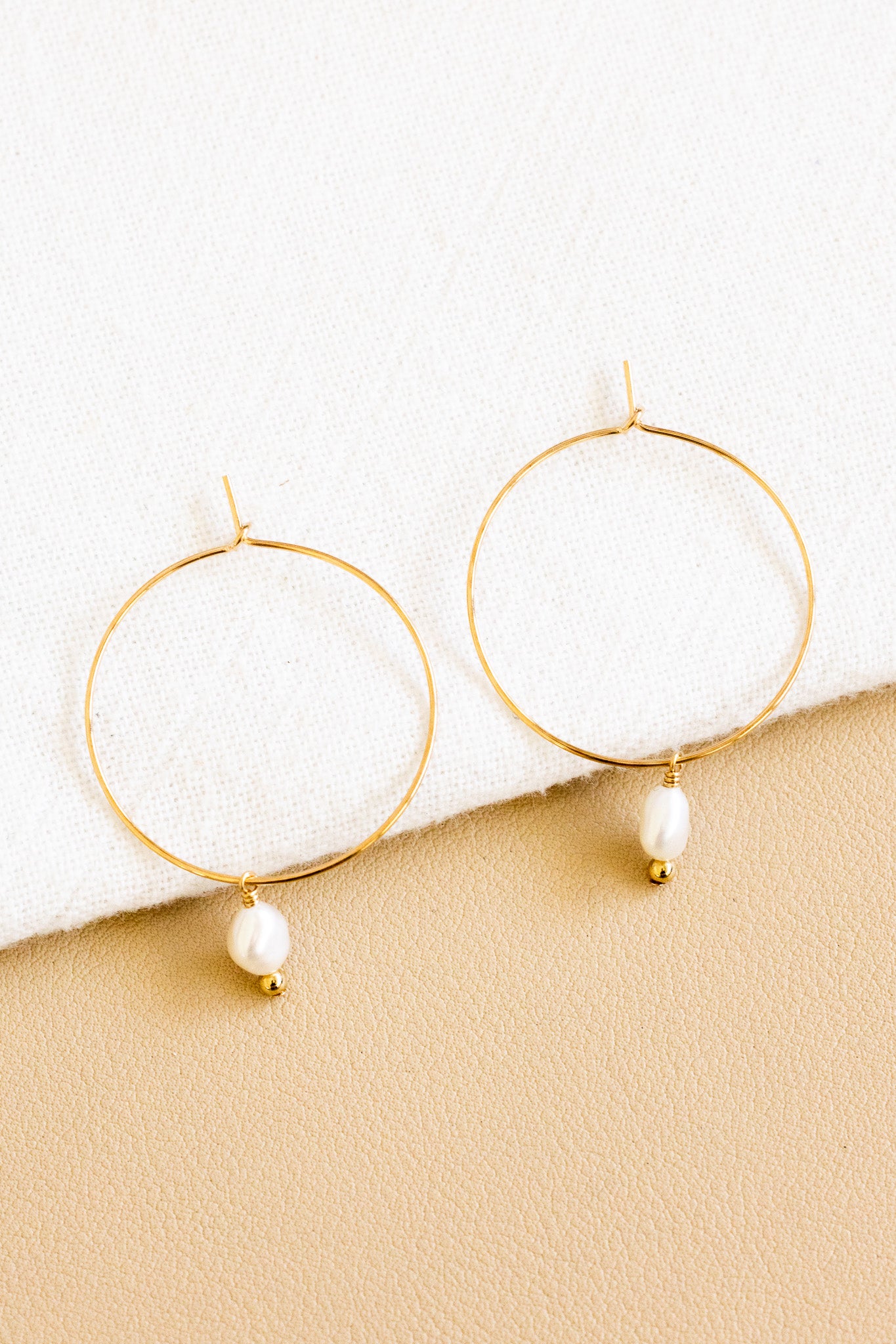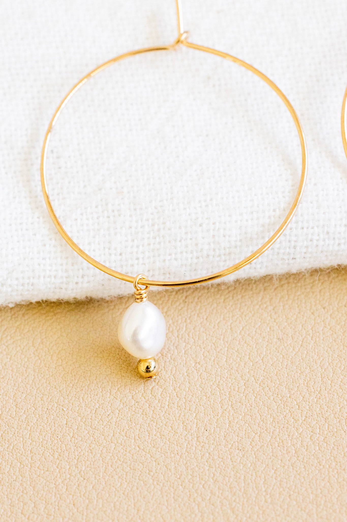 - 14k gold filled 30mm dainty hoops with 6mm keshi freshwater pearls and 14k gold filled beads