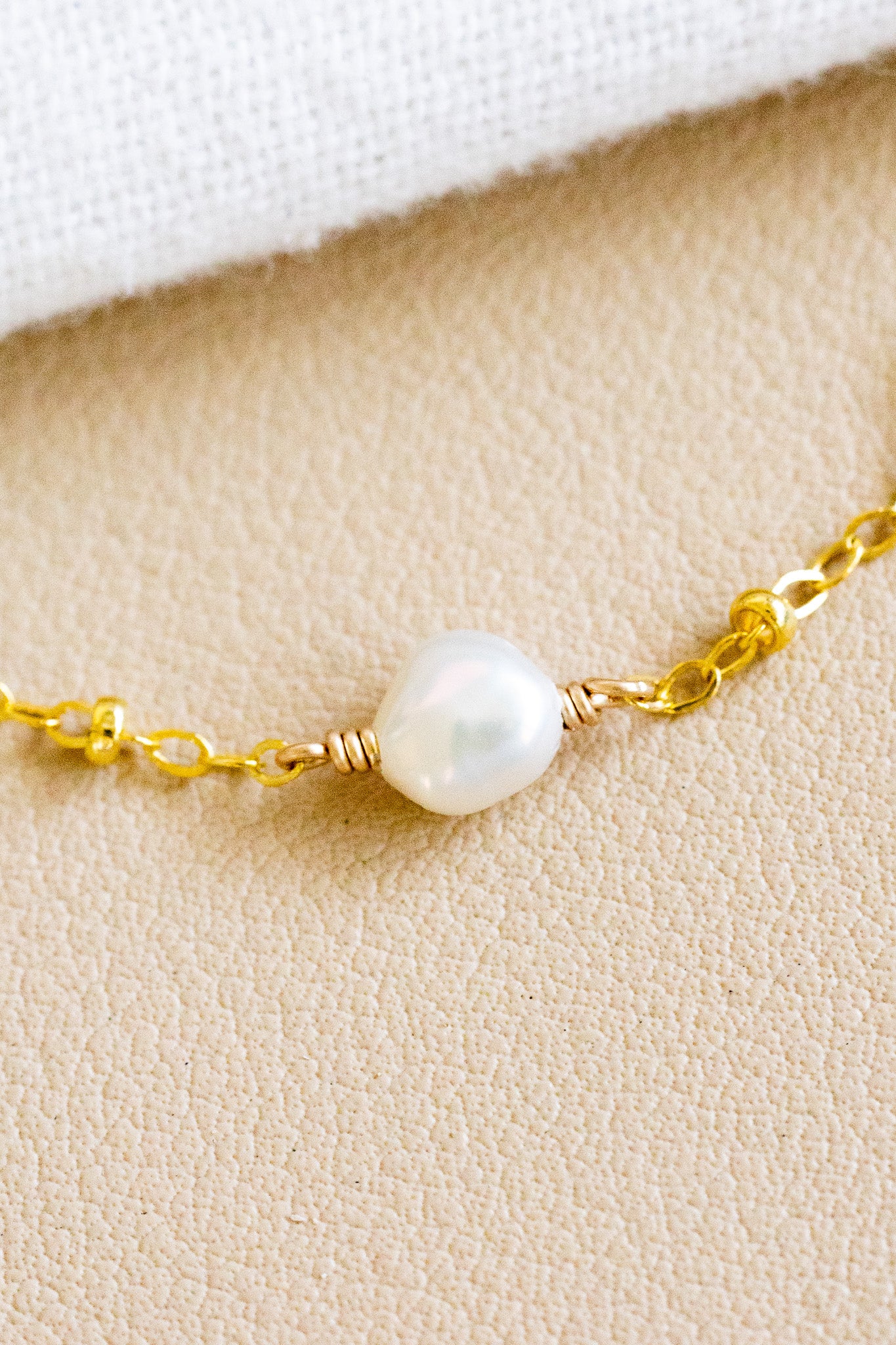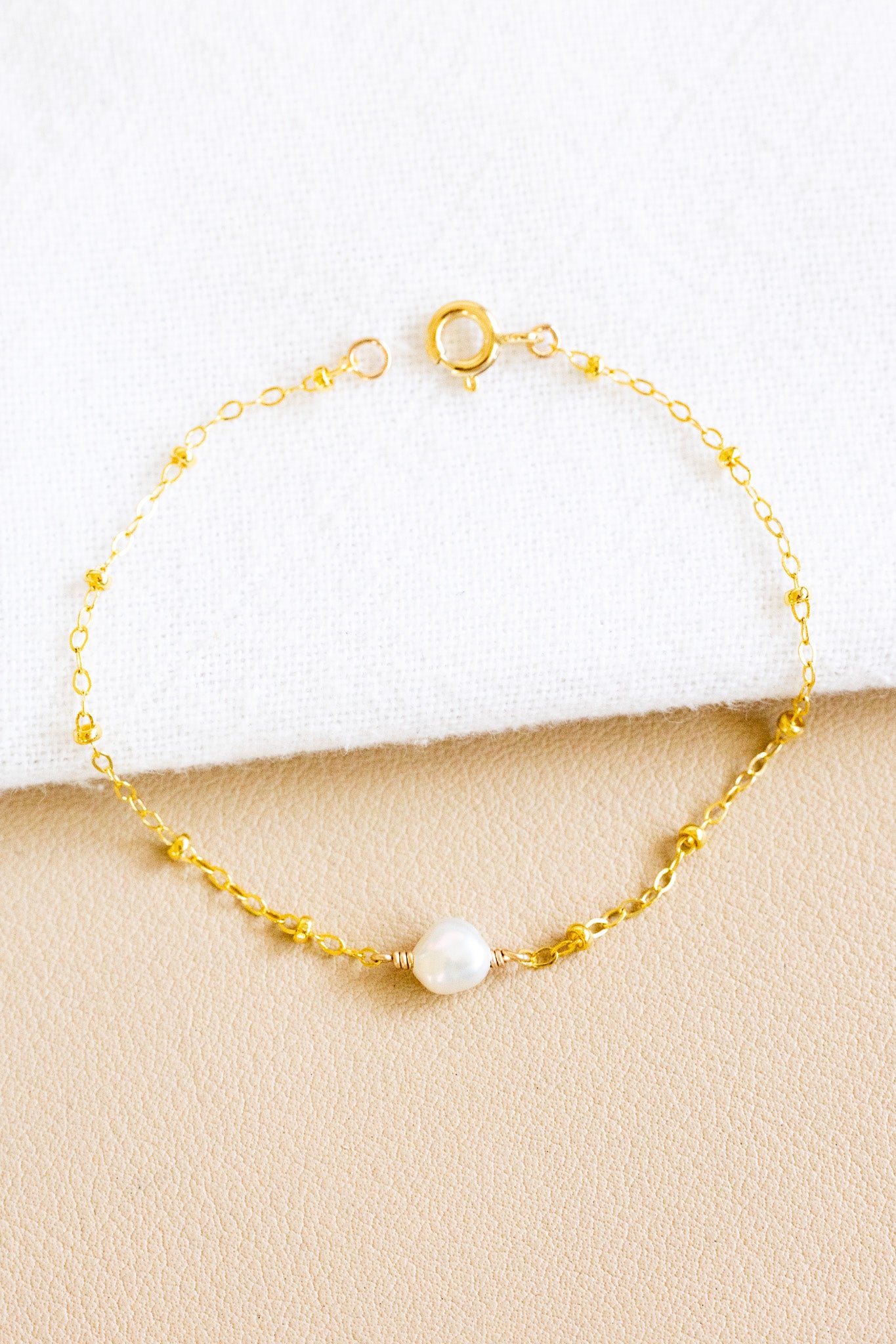 • 14k gold filled satellite chain bracelet with a 6mm keshi freshwater pearl