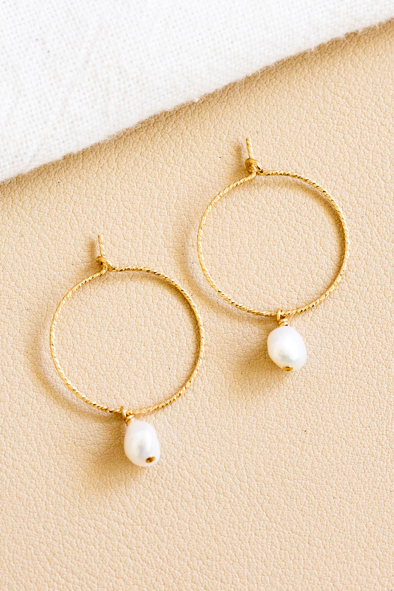 - 14k gold filled 20mm twisted hoops with 6mm keshi freshwater pearls
