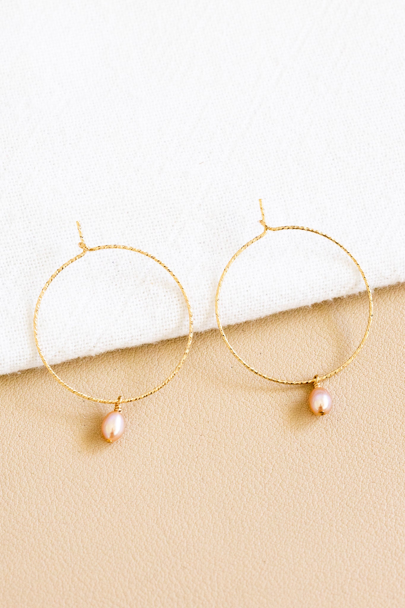 - 14k gold filled 30mm twisted hoops with two 5mm pink freshwater pearls