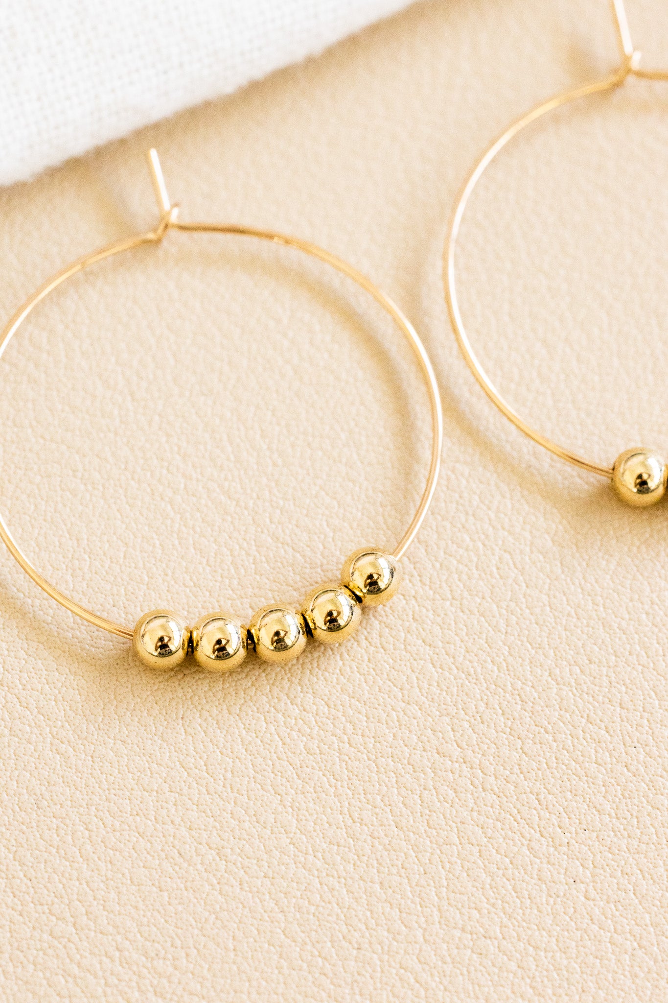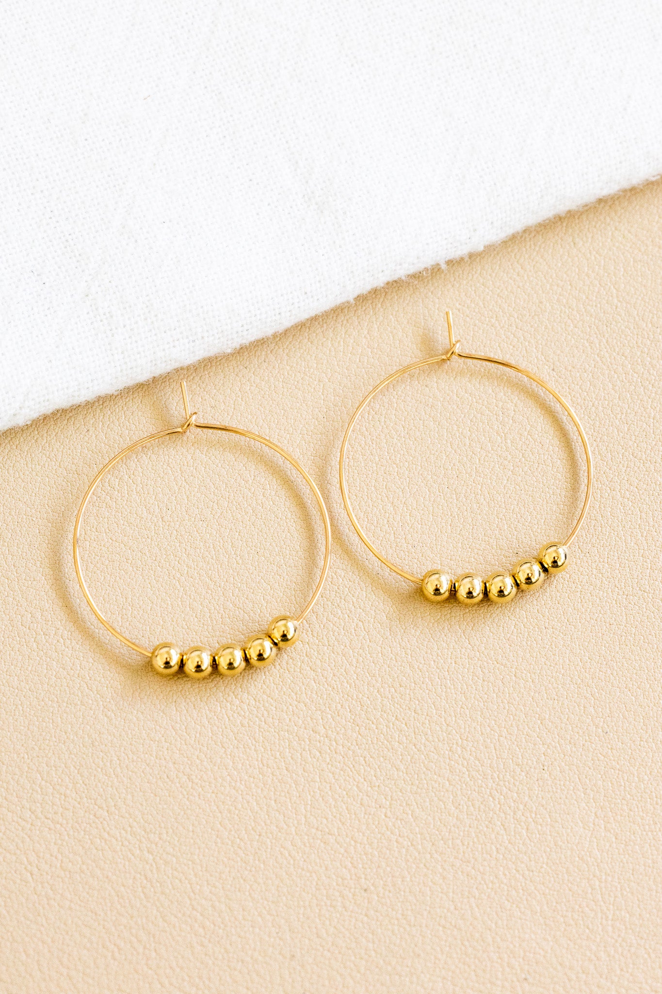 - 14k gold filled 30mm dainty hoops with floating 4mm gold filled beads