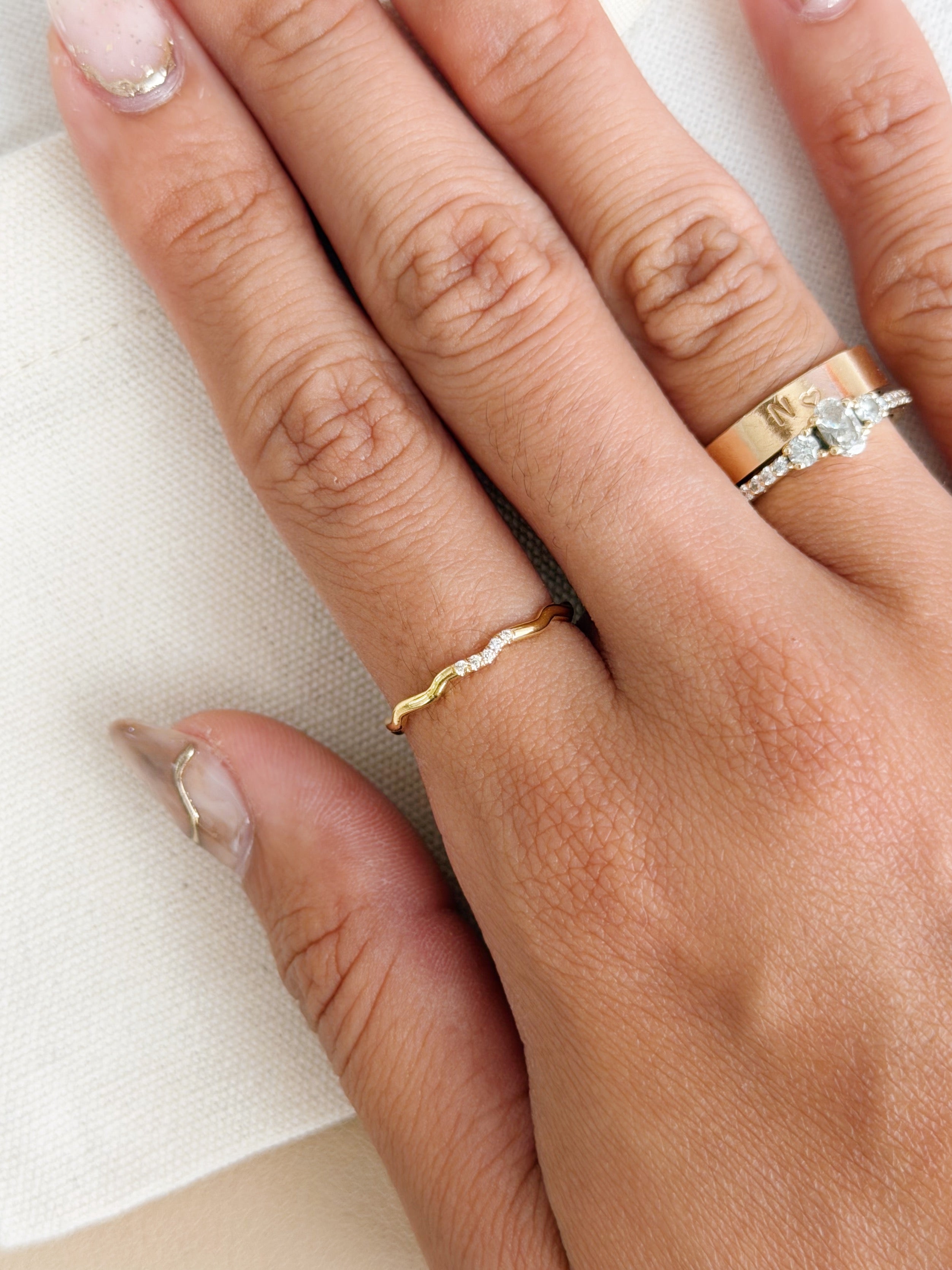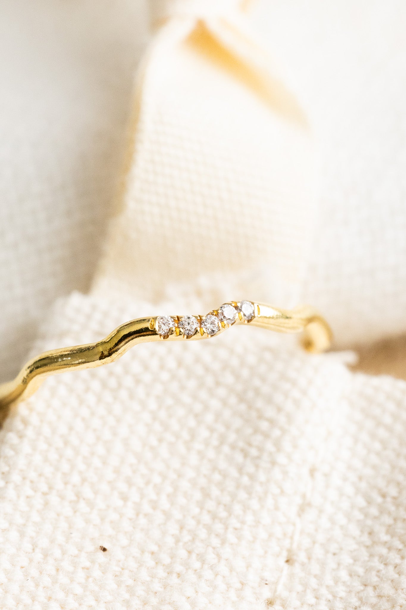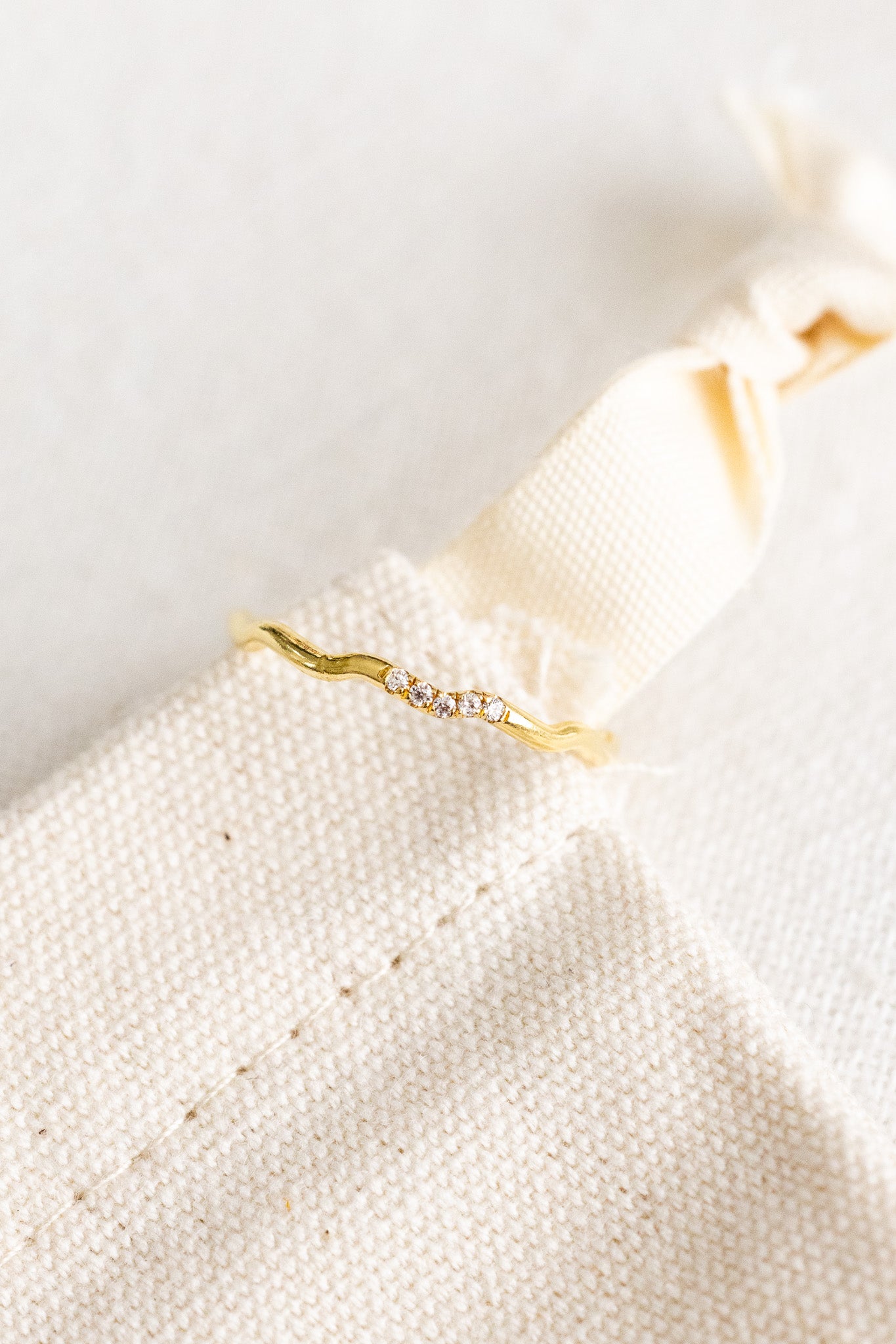 - 14k gold filled dainty ring band with 5 tiny cubic zirconias