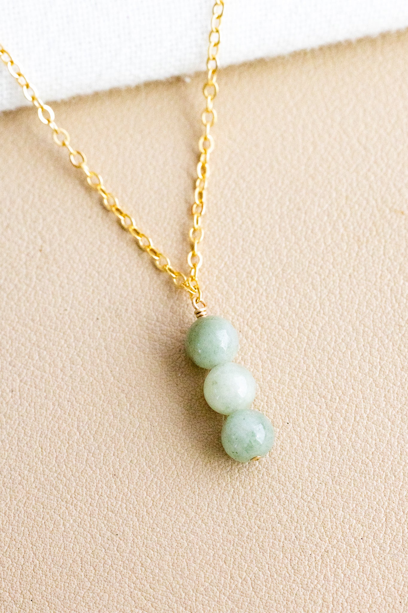 - 14k gold filled chain necklace with three 6mm natural jade stones