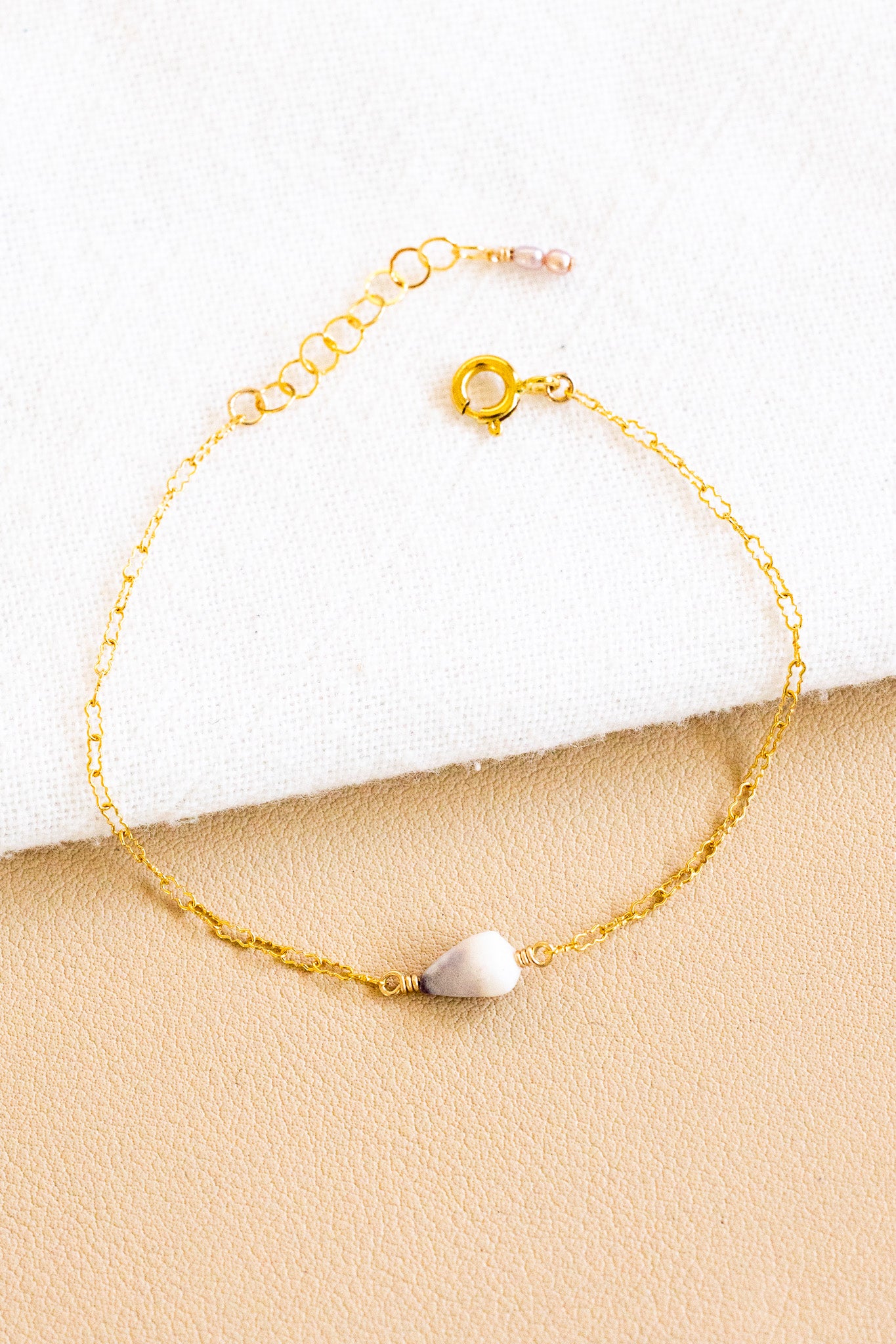 • Length: 6.25" + 1" extender chain with two 2mm x 2.5mm mini rice/oval shaped light pink freshwater pearls at the end