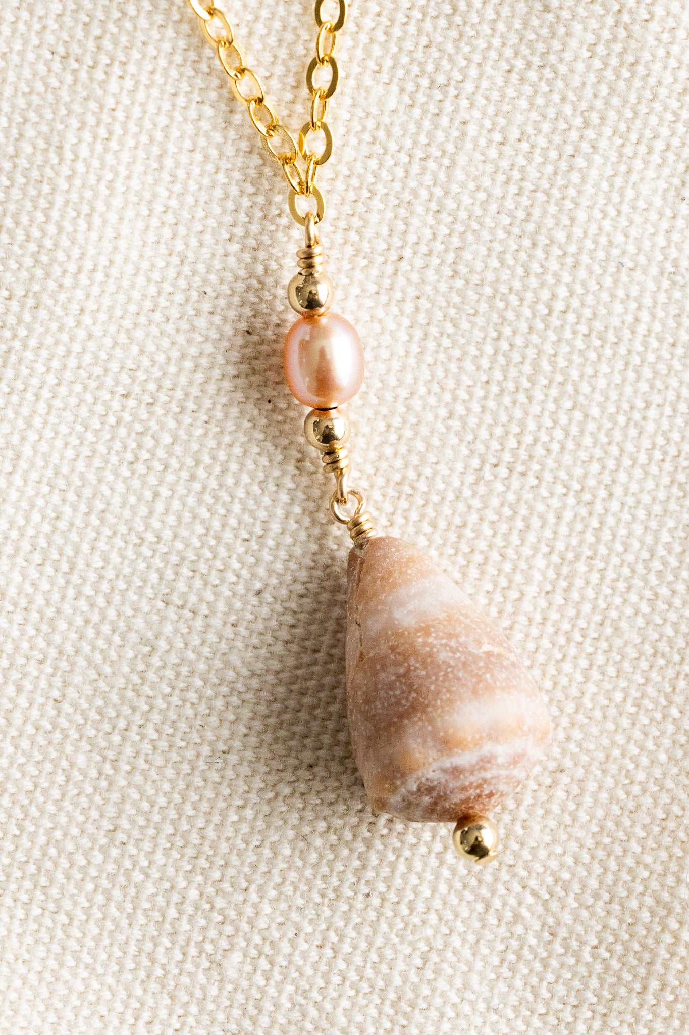 Pink Pearl & Bead Cone Shell Necklace